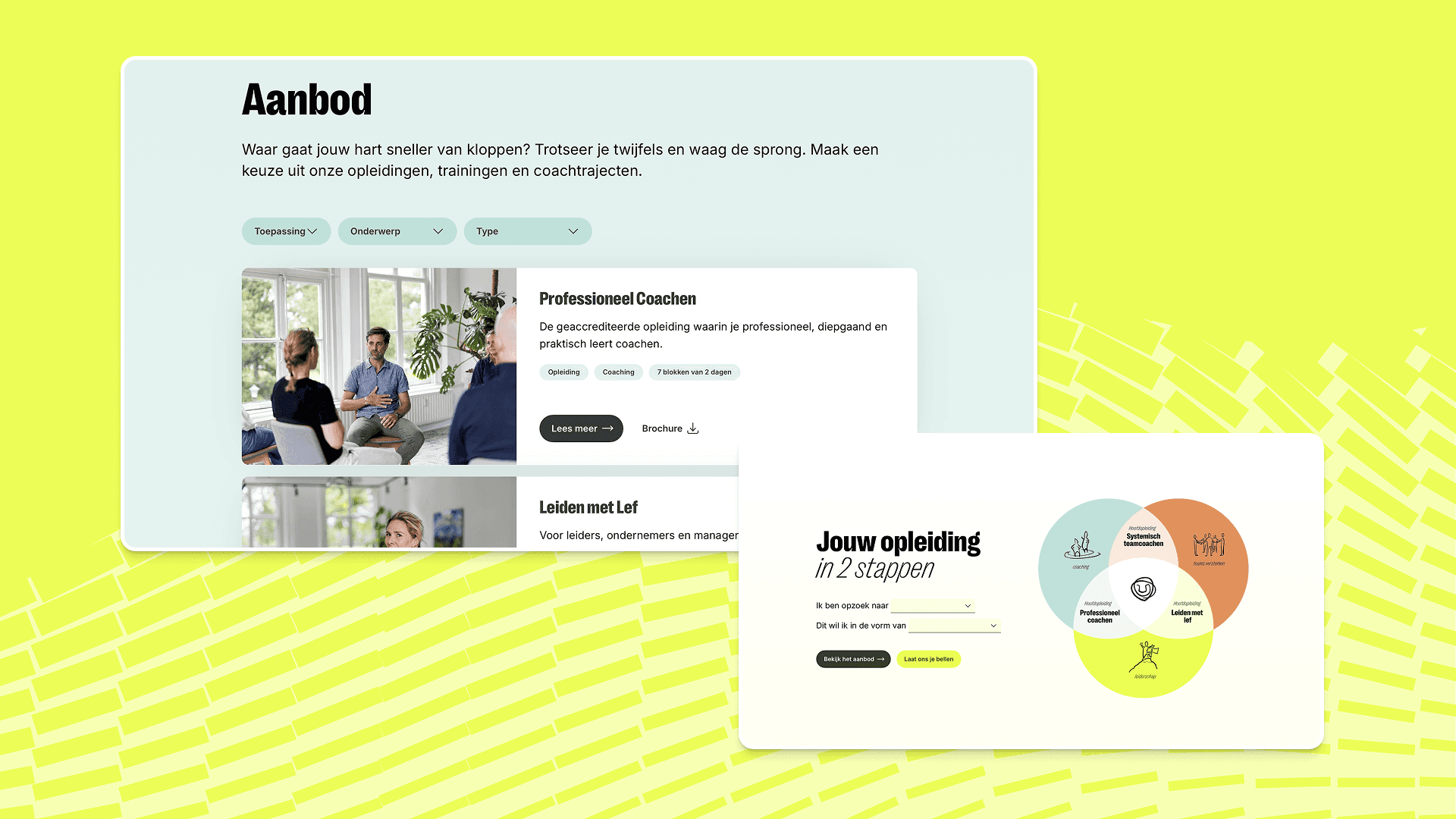 We ontwikkelden een identiteit geïnspireerd op de leeuw. Krachtig. Moedig. Zowel visueel als verbaal. Een merk bestemd voor wie er klaar voor is. Klaar om zich vast te bijten in loslaten. Om eindelijk ware verlangens na te jagen. En om de schreeuw die je voelt écht te laten horen. Met als bottom line: UIT wat erin zit.